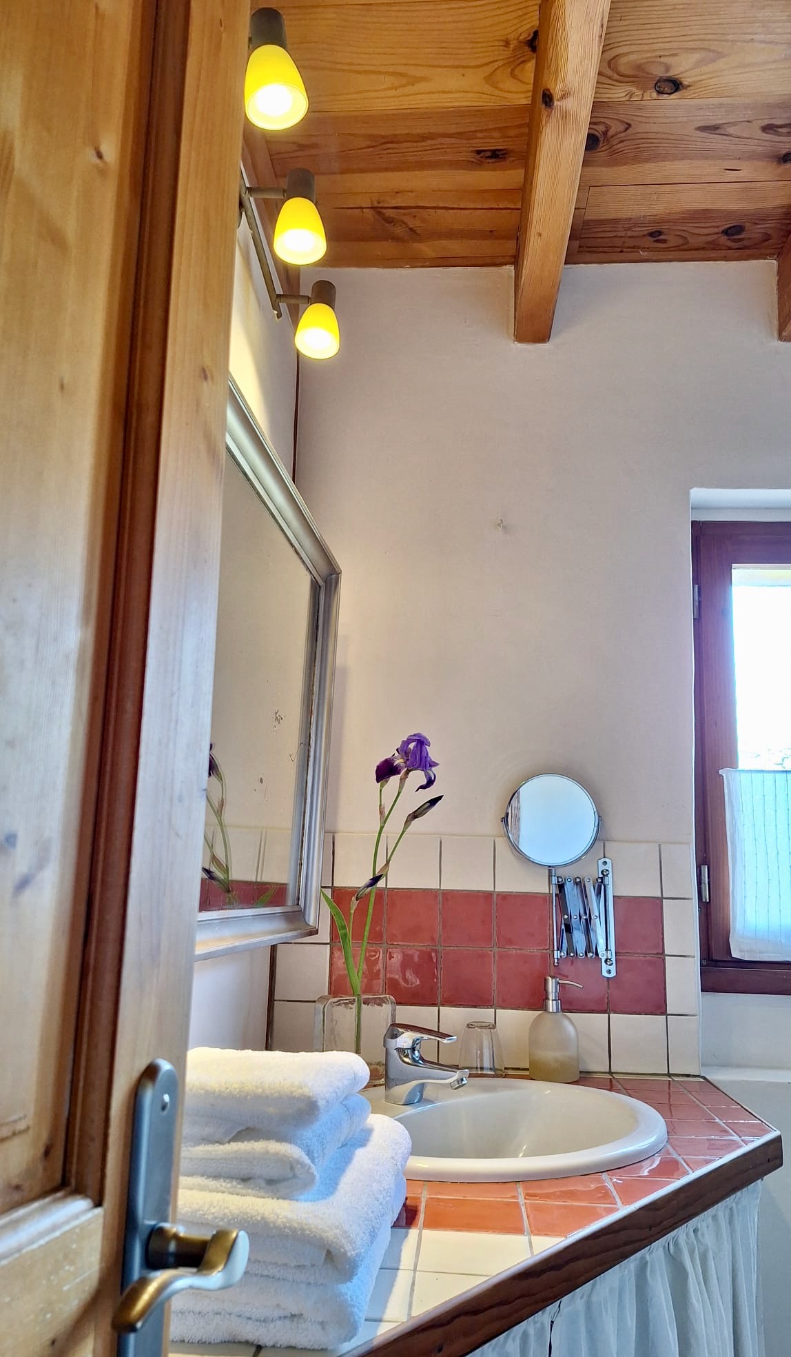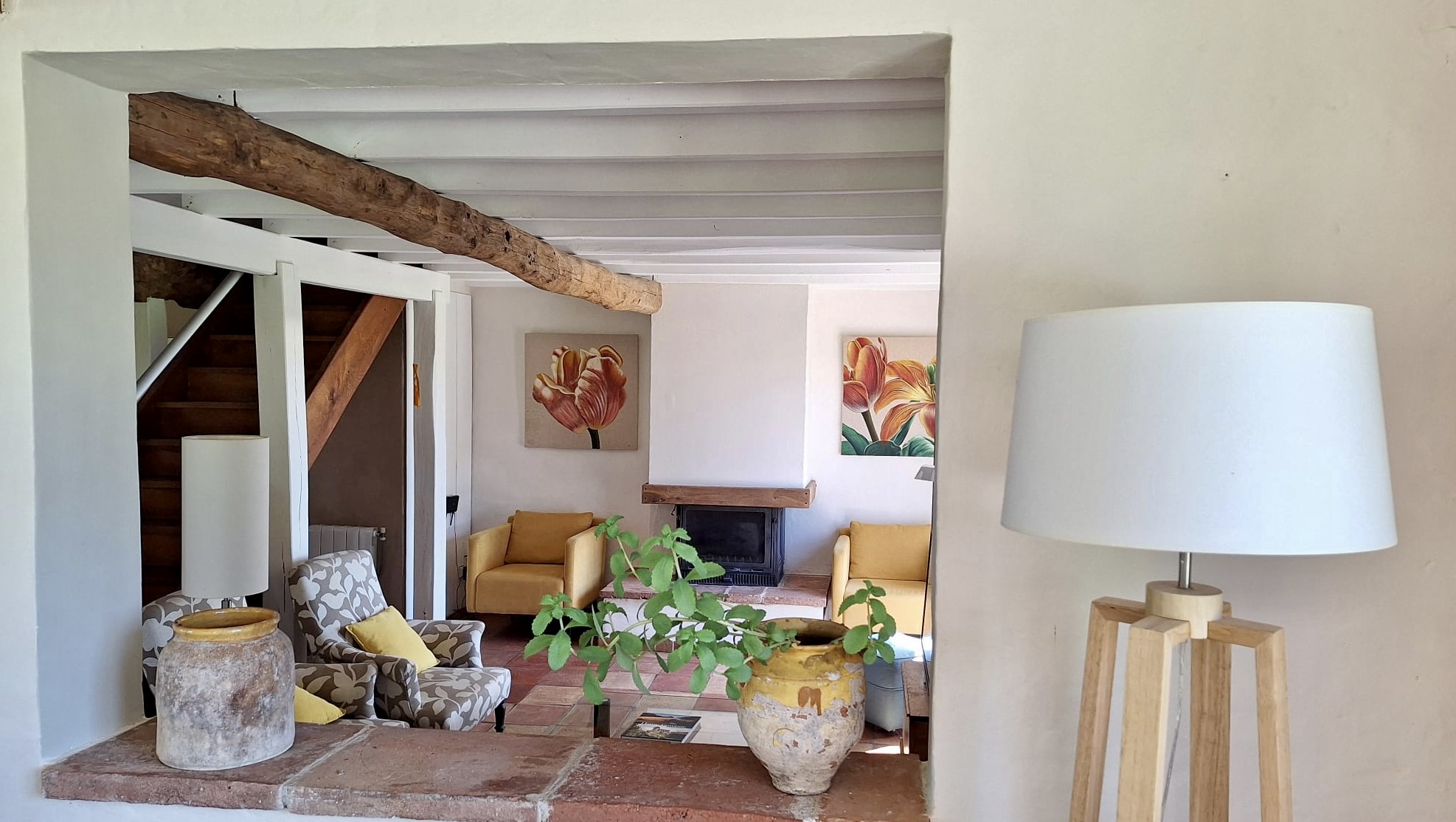 Un petit nid douillet, ce salon ! C’est une pièce incontournable en vacances. L’hiver le feu vient réchauffer l’atmosphère, l’été, cette pièce est fraîche pour se mettre un instant au repos.