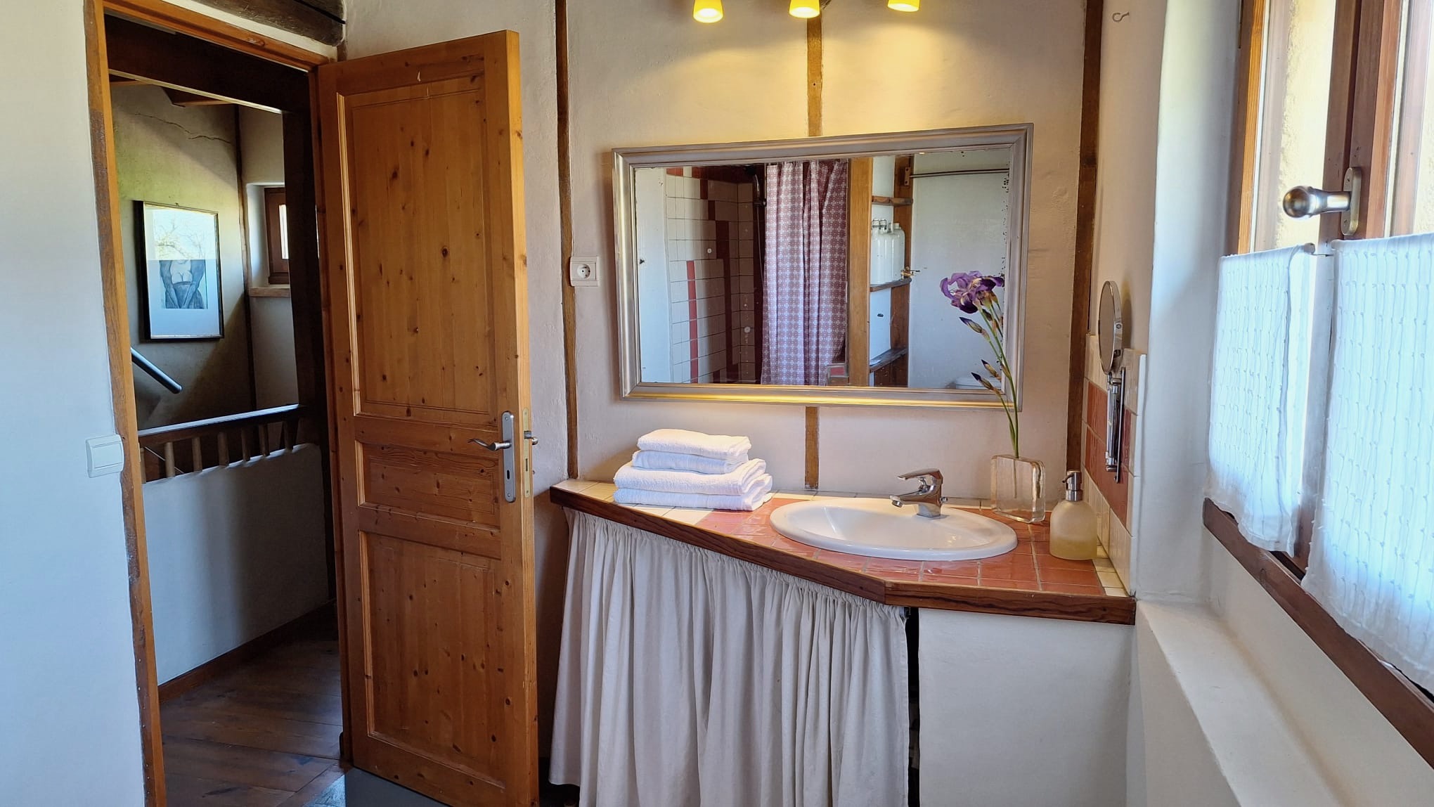 Superficie de la chambre : 15 m² • Superficie de la salle d’eau : 4 m² • Sol : carreaux en terre cuite • Revêtement des mûrs : peinture à l’argile • Rénovation : janvier 2021