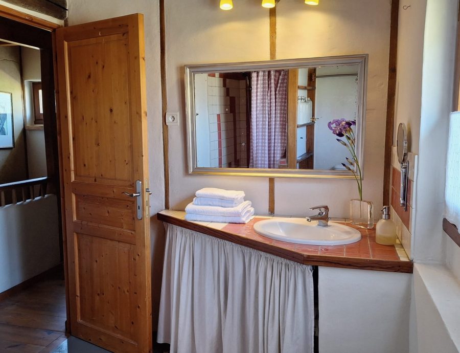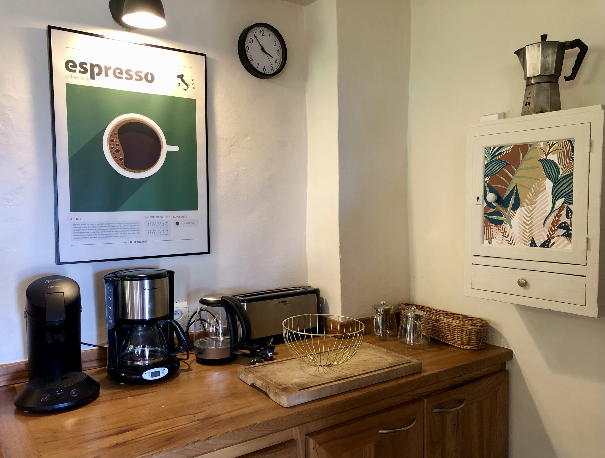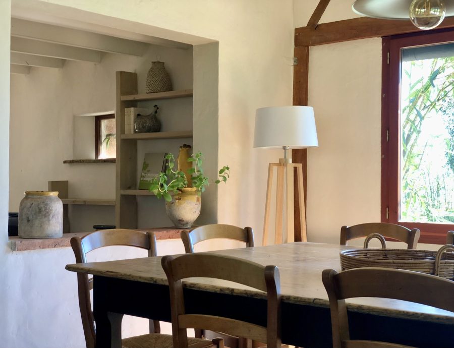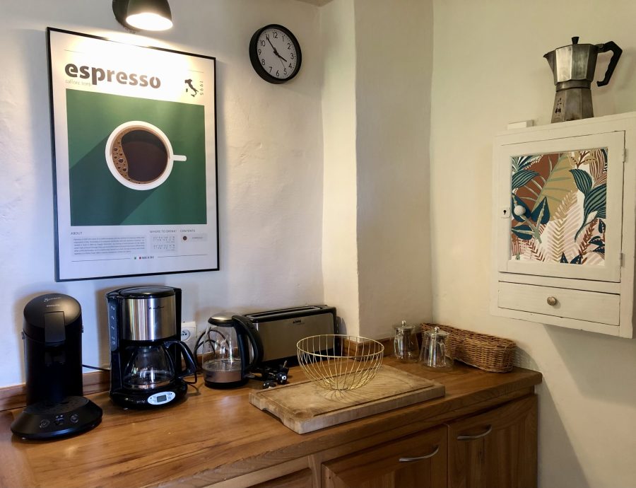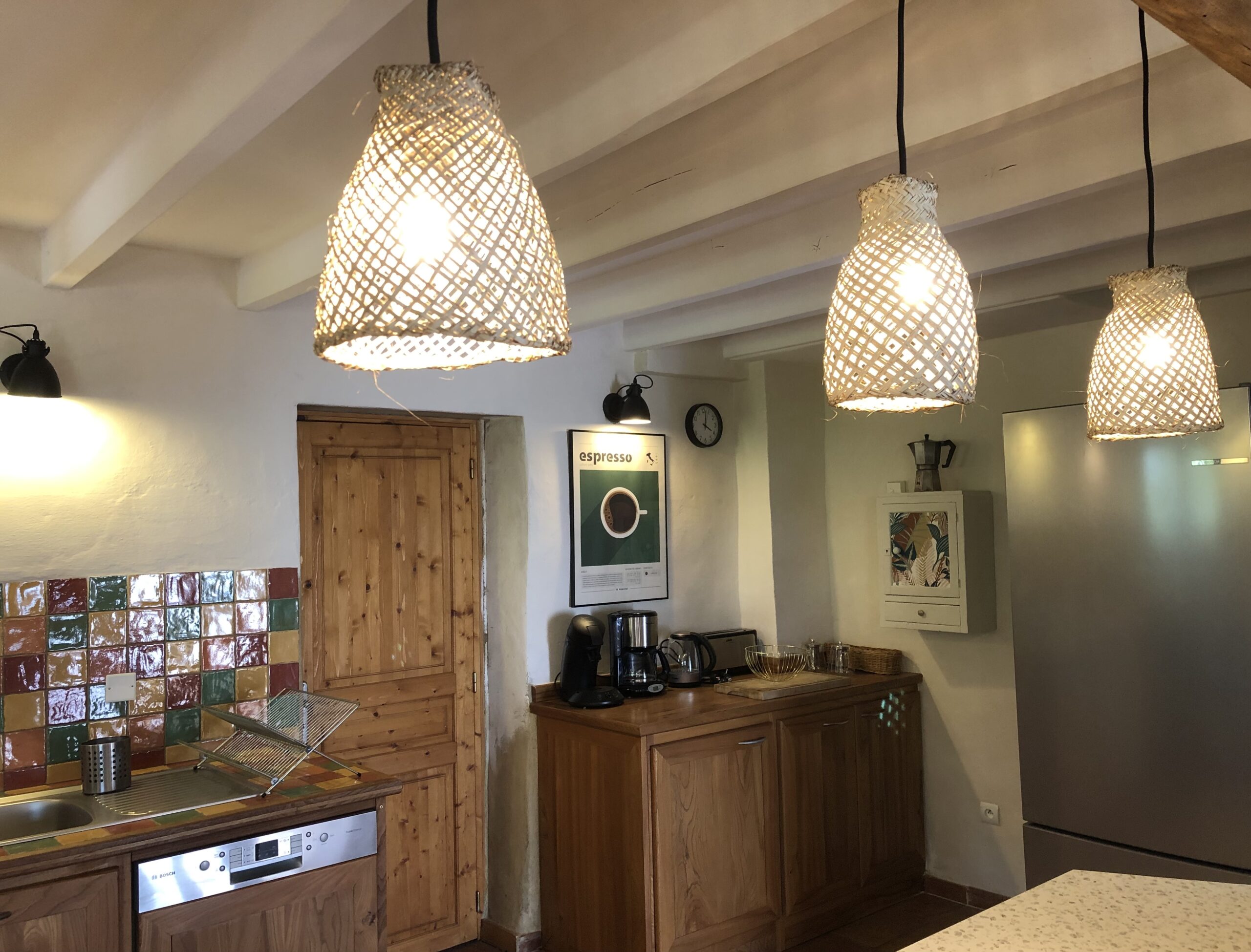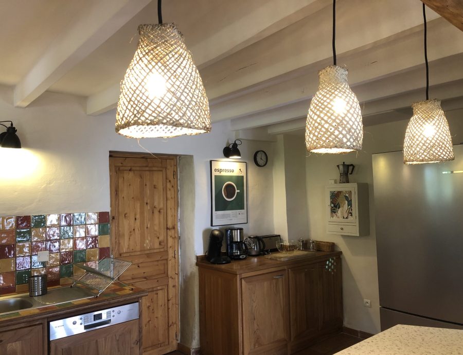 Un bel espace, bien équipé pour prendre le temps de cuisiner. Ici pas de kitchenette mais un bel espace et de vastes plans de travail. L’allure « campagne » n’empêche pas un équipement de qualité. Vous trouverez dans les nombreux placards de rangement, le nécessaire pour cuisiner aisément et suffisamment de vaisselles pour dresser de belles et grandes tablées !