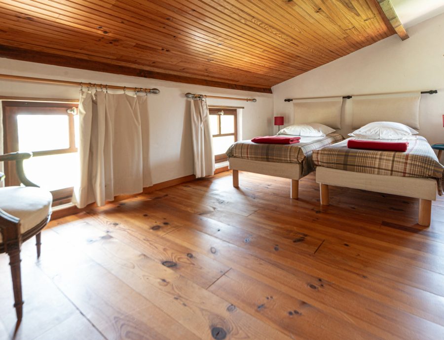 Superficie de la chambre : 15 m² • Sol : Parquet • Revêtements muraux : peinture « terre naturelle »